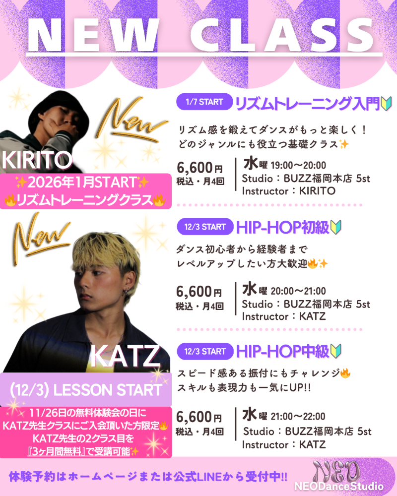 | 20:00-21:00 | KATZ / HIP-HOP初級🔰 |
