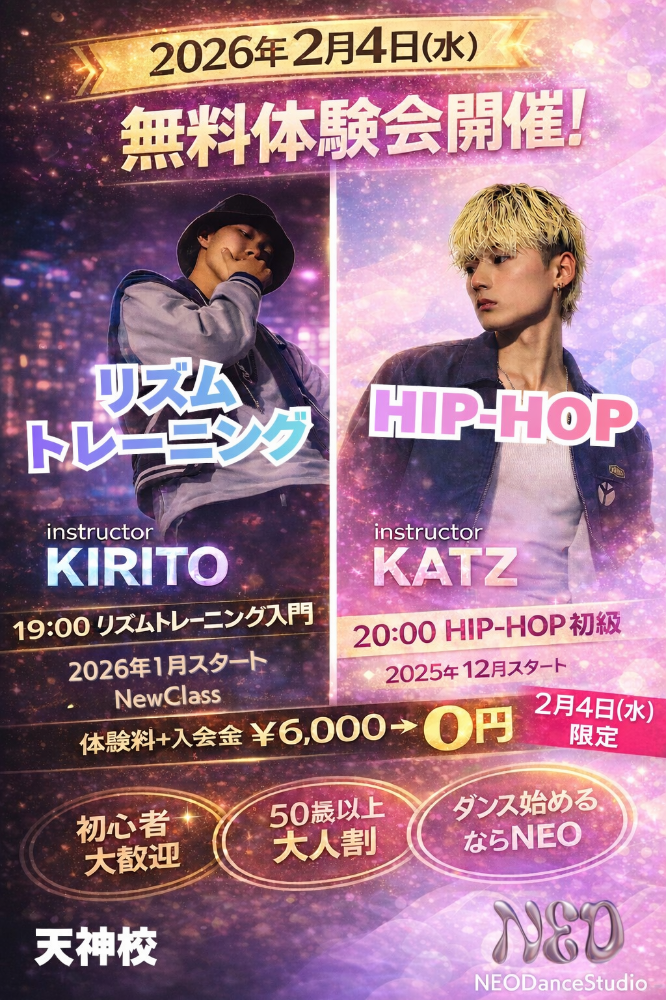 | 20:00-21:00 | KATZ / HIP-HOP初級🔰 |